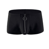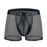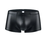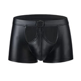 Sexy Men Boxers Underwear Open Crotch Faux Leather U Convex Pouch Black Boxers Shorts