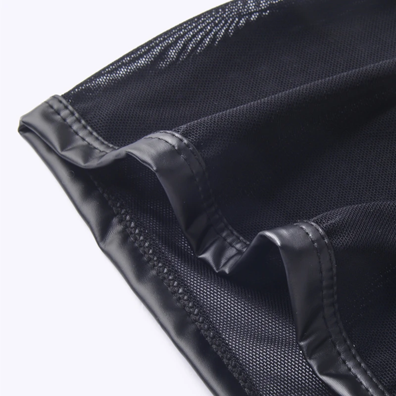 Fitness Long Men Boxer Underwear Mesh Faux Leather Men's Boxershorts Panties Long Leg Trunks Sexy Pouch Opened Button Underpants