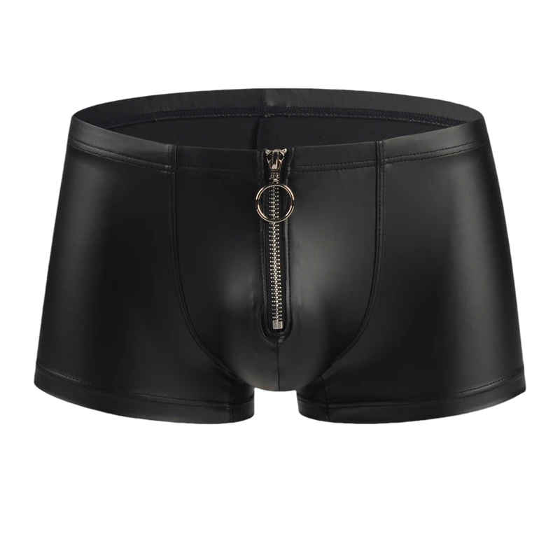 Sexy Men's Panties Faux Leather Men Boxer Shorts Underpants Zipper Underwear U Pouch Mens  Boxers Lingerie